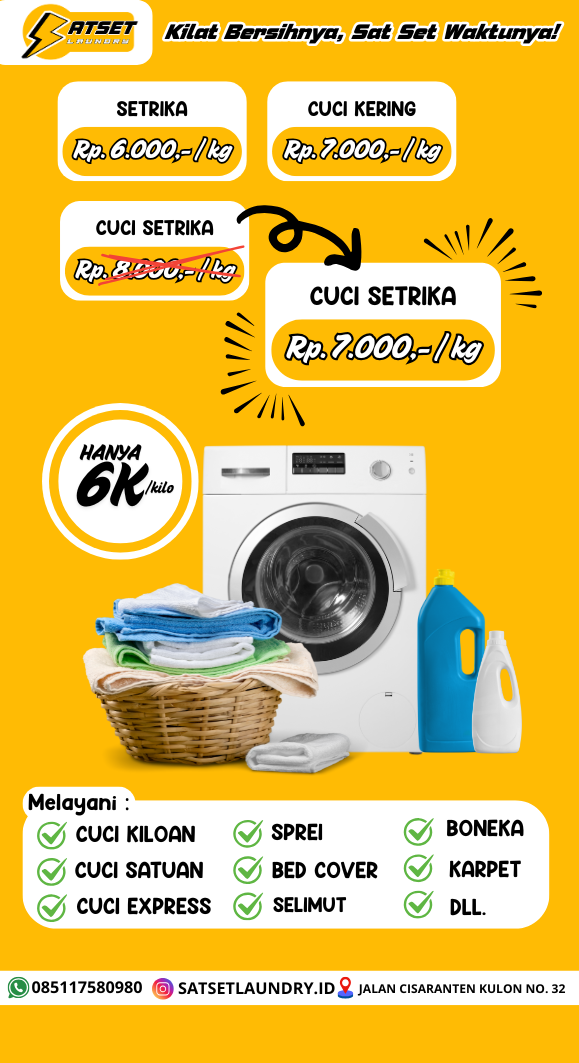 Dengan semangat “satset” yang berarti sigap dan gesit, kami berkomitmen memberikan layanan terbaik—mulai dari cuci harian, dry clean, hingga antar-jemput gratis.